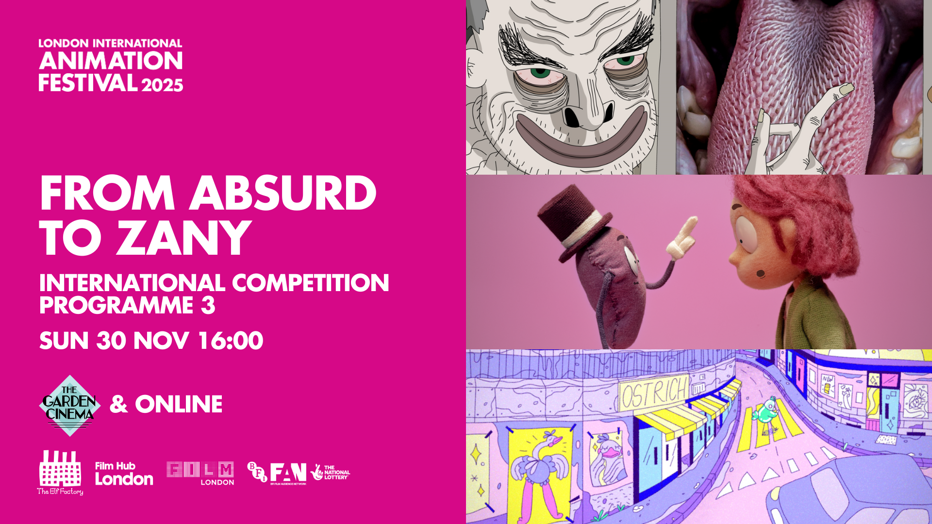 This programme ‘From Absurd to Zany’ celebrates some of the funniest, weirdest and eye-poppingly nutty films that were entered this year.